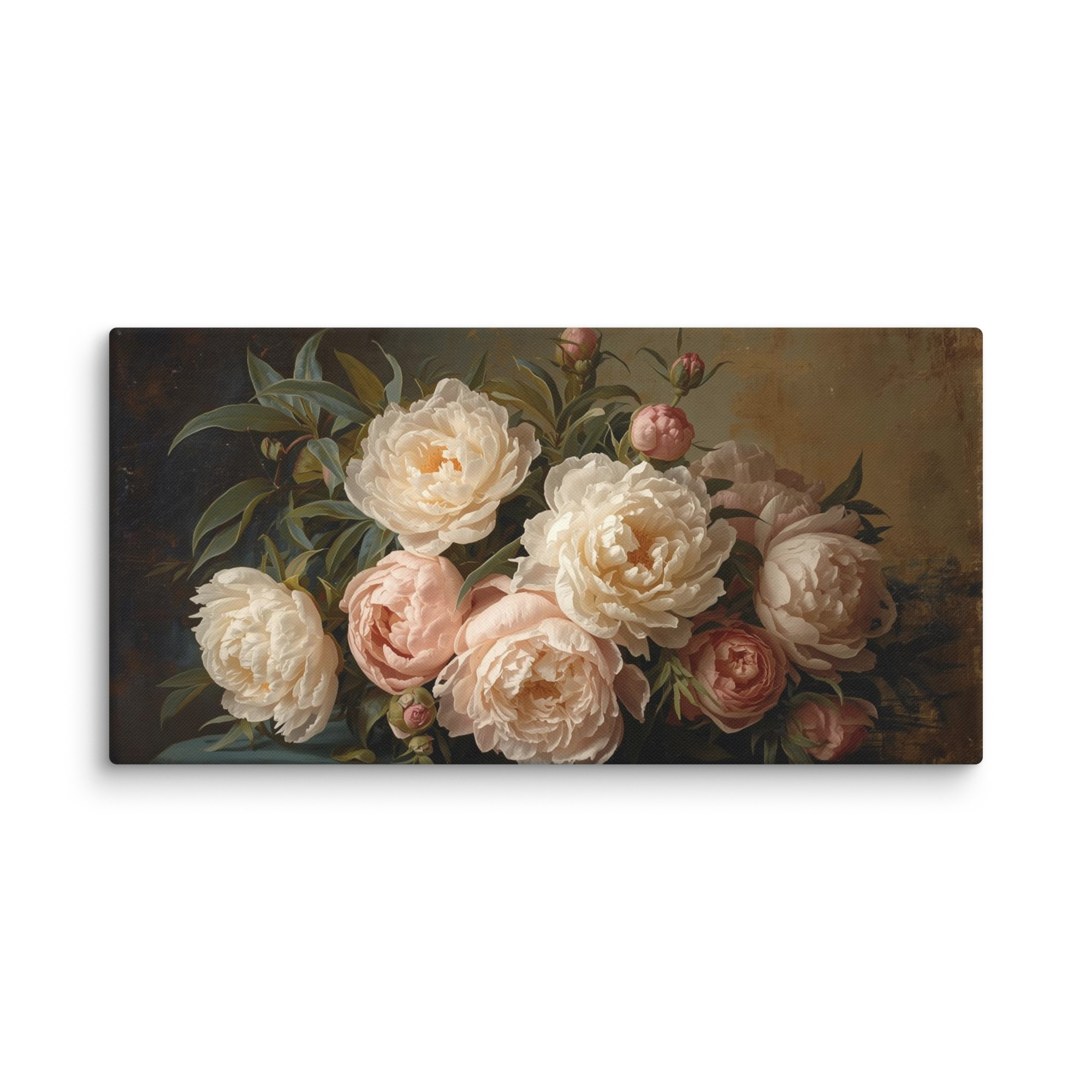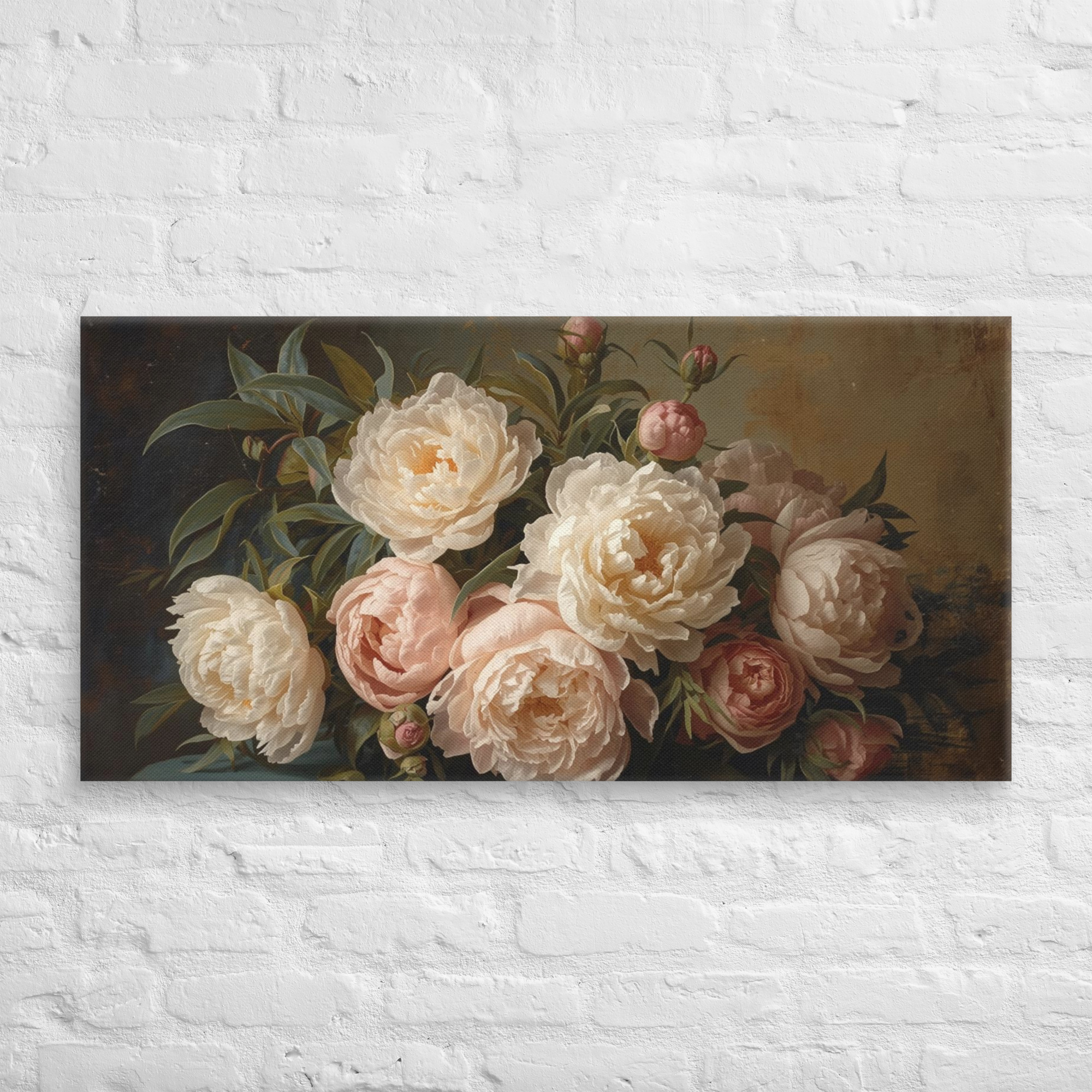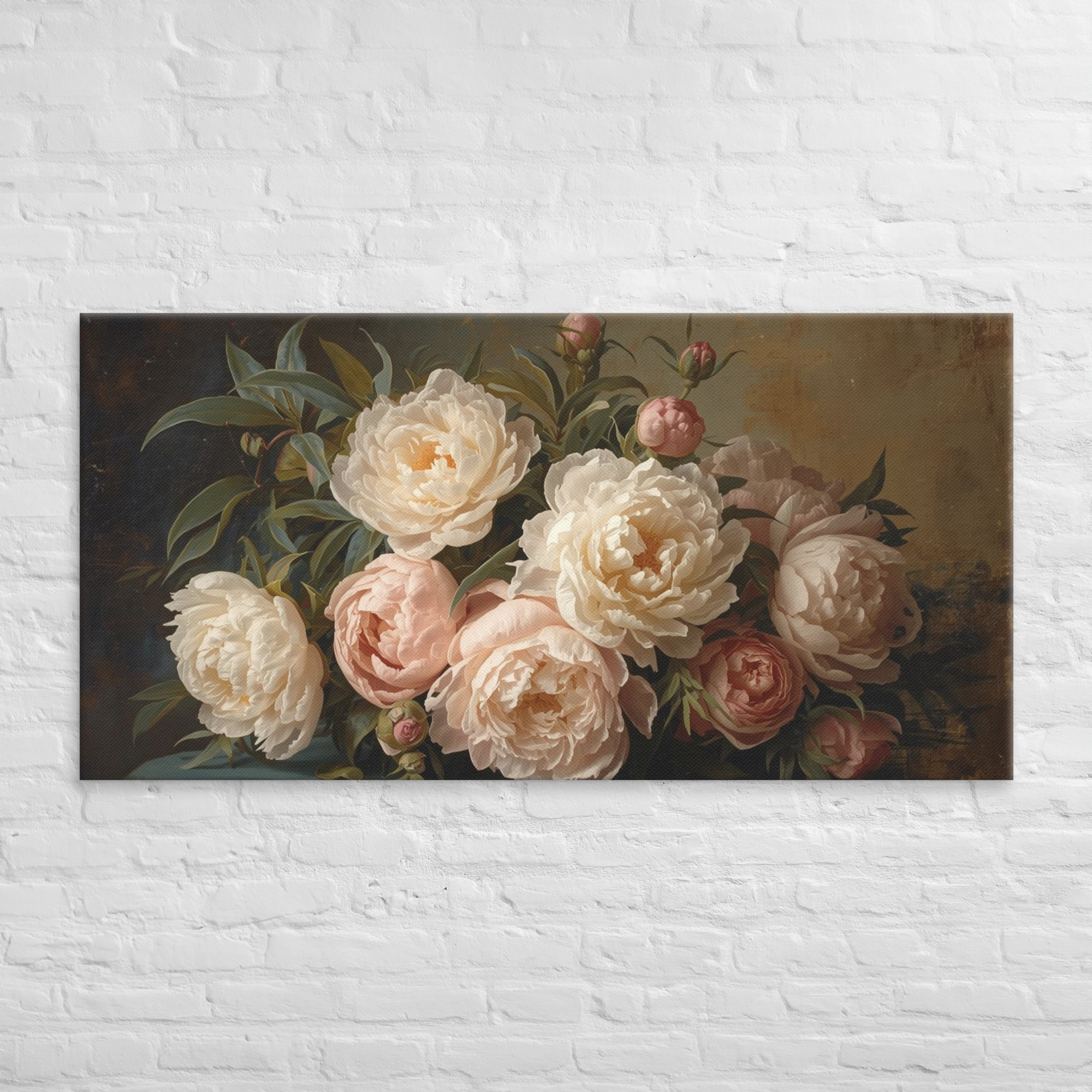 Tableau décoratif mural « Pivoines d’antan ». Vous cherchez à ajouter un peu de style à votre pièce ou votre bureau ? Ne cherchez pas plus loin : Vous allez adorer cette impression sur toile vive et résistante à l’eau.