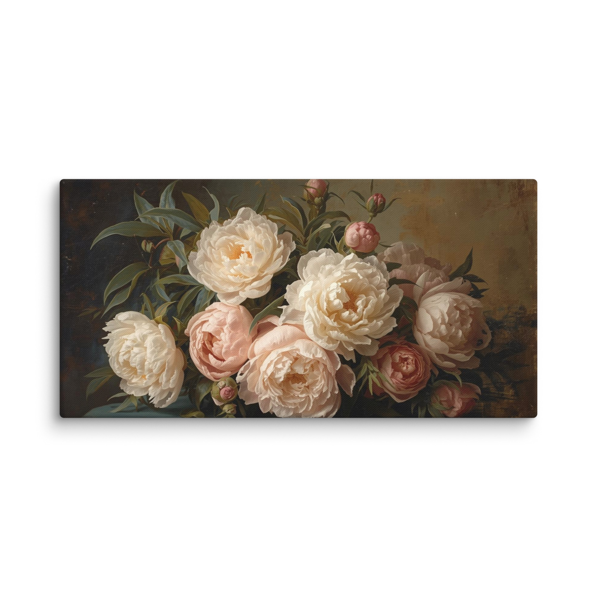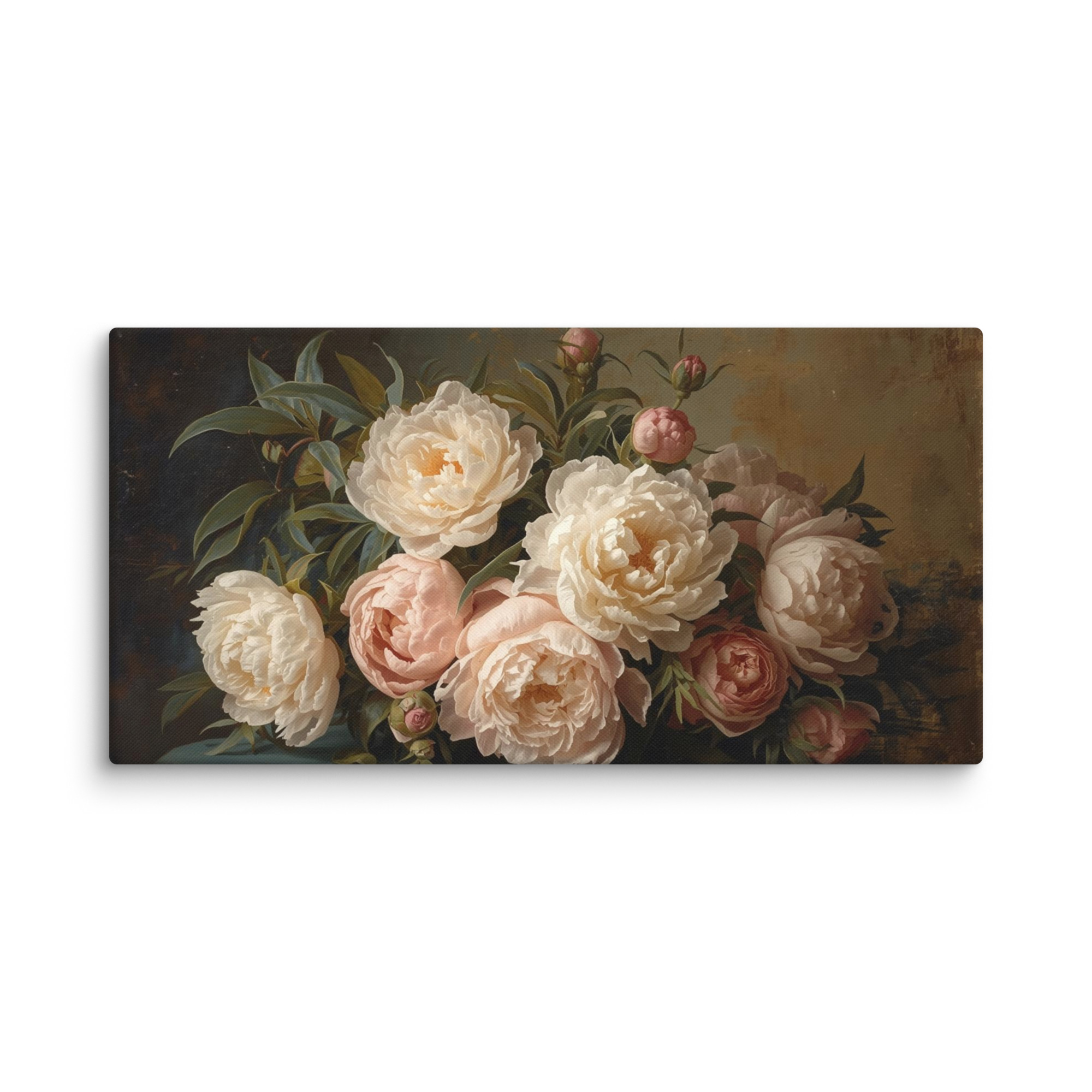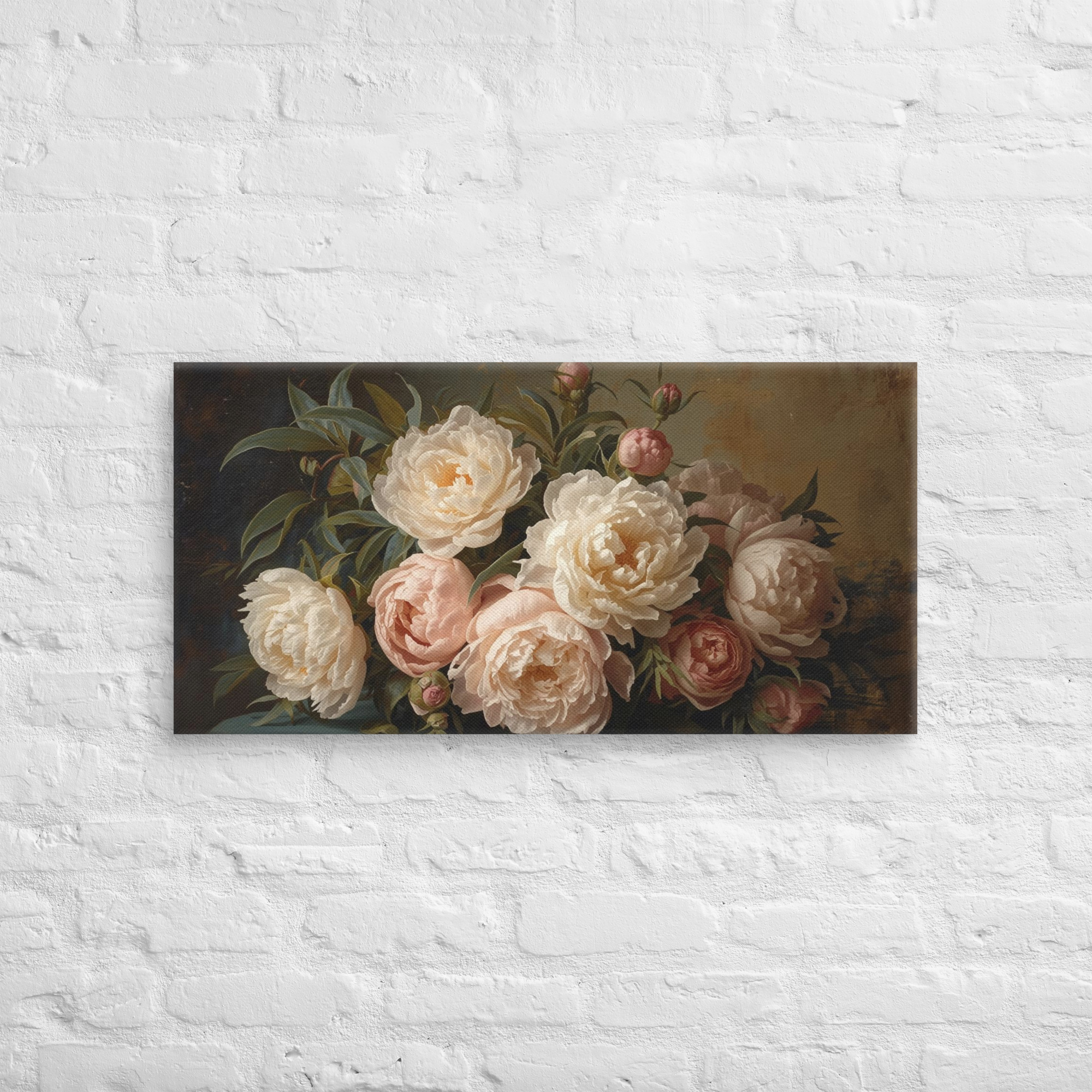 Tableau décoratif mural « Pivoines d’antan ». Vous cherchez à ajouter un peu de style à votre pièce ou votre bureau ? Ne cherchez pas plus loin : Vous allez adorer cette impression sur toile vive et résistante à l’eau.